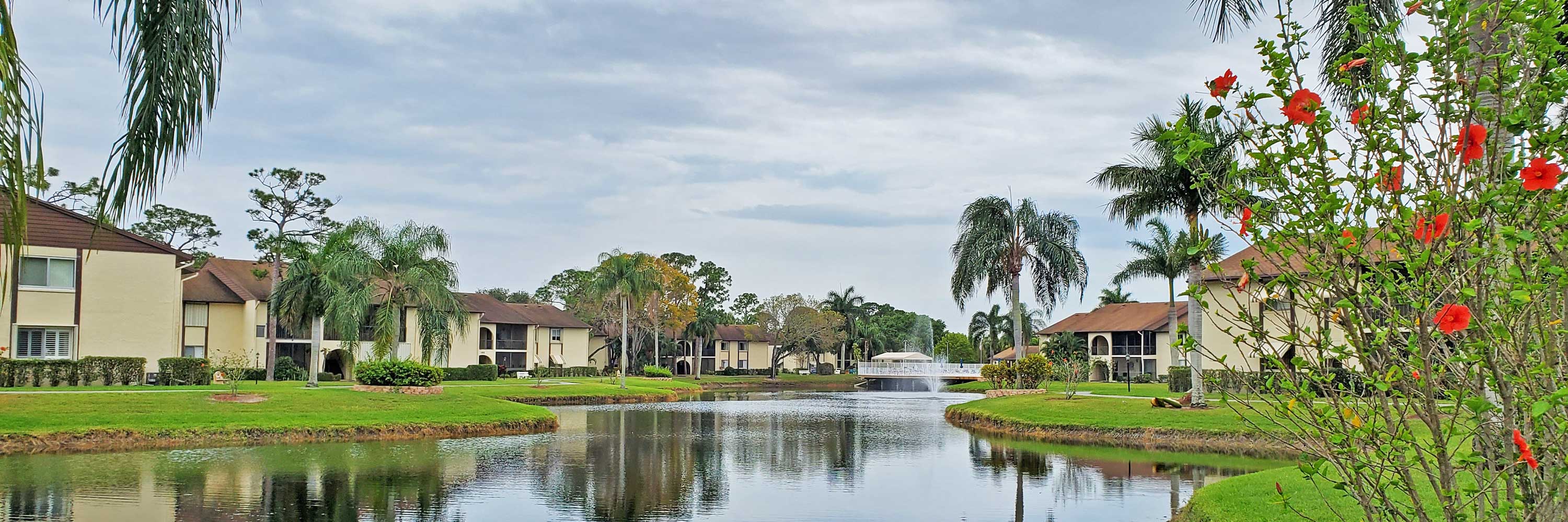 Pine Ridge South One is an active 55 and over community located in Greenacres Florida, seven miles from the Atlantic Ocean. Located near Jog and Melaluca, it is conveniently located near interstate 95 and Florida’s turnpike. The community consists of 42 two-story buildings with 336 units including one and two-bedroom floorplans. Residents can relax in the lush green courtyards or take a stroll on the walking path around the beautiful lake.